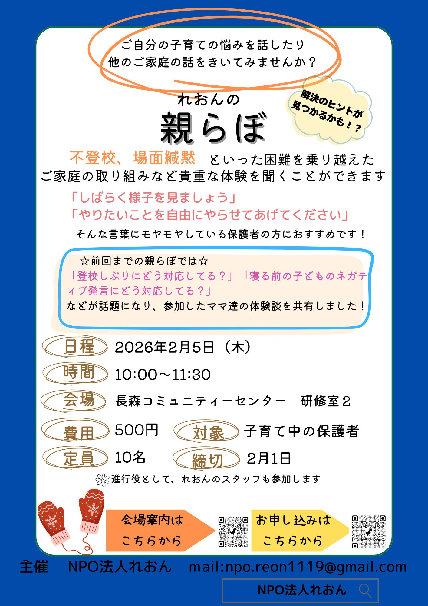 2月5日(木)10:00〜親らぼを開催します。