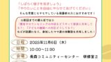 次回は11月6日木曜日10:00から、長森コミュニティーセンター研修室2で開催します。